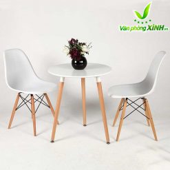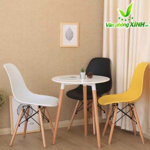 Mặt bàn Eames: làm bằng gỗ nhựa composite với bề mặt sáng bóng, dẻo dai, dễ lau chùi, bền màu với thời gian.