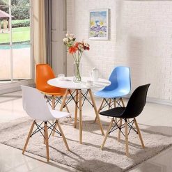 Bàn Mặt Tròn Eames BE08T có kiểu sang trọng với chất liệu tấm MDF cao cấp được sản xuất trên dây chuyền công nghệ cao có khả năng chống thấm nước và dễ dàng lau chùi, làm sạch. Bàn có màu trắng trang nhã hay màu đen sang trọng góp phần tạo không gian thông thoáng và làm nổi bật các món ăn đồ uống được bày biện bên trên tạo cảm giác sạch sẽ, ngon miệng cho thực khách.