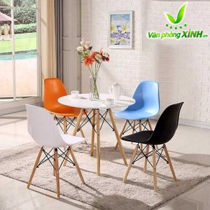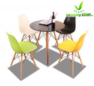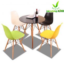 Mặt bàn Eames: làm bằng gỗ nhựa composite với bề mặt sáng bóng, dẻo dai, dễ lau chùi, bền màu với thời gian.