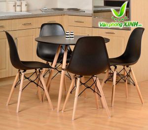 Chân bàn: Chân bàn Eames làm bằng sồi nhập khẩu, gỗ tốt, màu sắc mềm, cứng, chịu mài mòn. Bốn chân bàn được liên kết với nhau bằng khung thép sơn tĩnh điện chắc chắn tạo nên điểm nhấn so với những chiếc bàn thông thường khác.