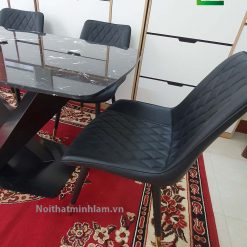 - Ghế: Bọc da PU mềm mại, khung kim loại sơn tĩnh điện chống gỉ, chân ghế bọc nhựa chống xước sàn nhà.