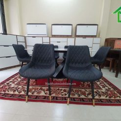- Ghế: Bọc da PU mềm mại, khung kim loại sơn tĩnh điện chống gỉ, chân ghế bọc nhựa chống xước sàn nhà.