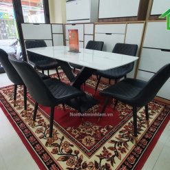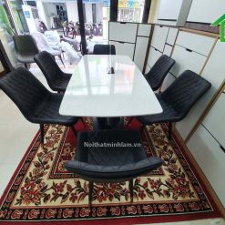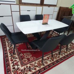 - Mặt bàn ăn với đá cảm thạch nhân tạo có khả năng chống ố, chống bám bẩn, lưu giữ vẻ bóng bẩy và bền bỉ theo thời gian ( khác hoàn toàn với hàng phân khúc kém chất lượng ) . Đây là điểm cộng của bàn ăn N3F, tạo dựng niềm tin trong lòng khách hàng.