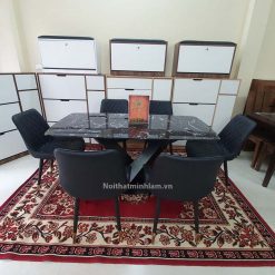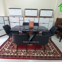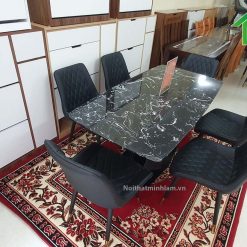 - Mặt bàn ăn với đá cảm thạch nhân tạo có khả năng chống ố, chống bám bẩn, lưu giữ vẻ bóng bẩy và bền bỉ theo thời gian ( khác hoàn toàn với hàng phân khúc kém chất lượng ) . Đây là điểm cộng của bàn ăn N3F, tạo dựng niềm tin trong lòng khách hàng.