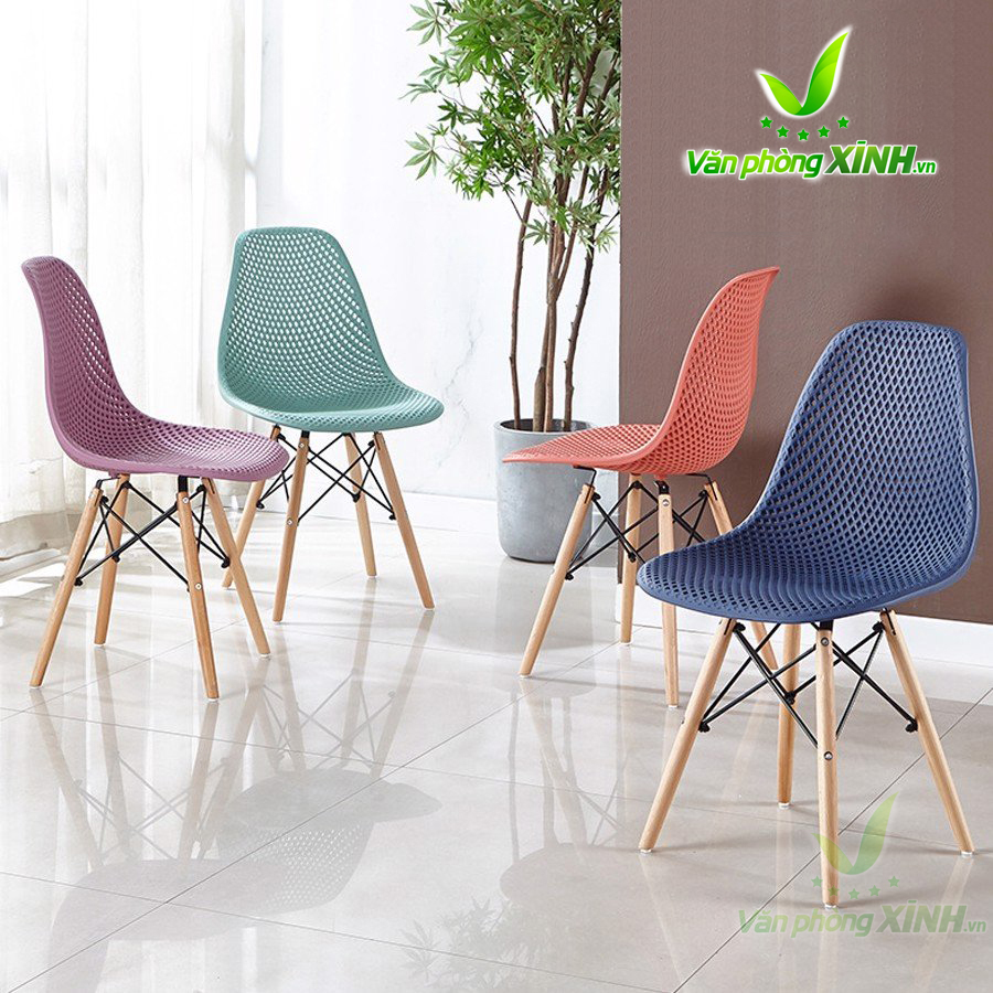 - Chất liệu:Chân gỗ sồi đan sắt, thân ghế là chất liệu nhựa ABS chịu lực chống chầy xước