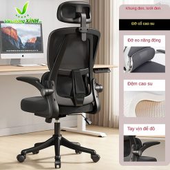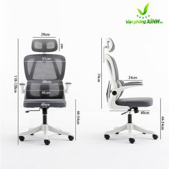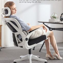 Tay ghế: Được làm từ chất liệu nhựa PP cứng, thiết kế bo góc với đường cong mềm mại nâng đỡ khuỷu tay người dùng, giúp hạn chế cảm giác mỏi tay và vai trong khi làm việc. Đặc biệt, tuy có thiết kế liền lưng ghế nhưng tay ghế cũng có thể co giãn chiều dài khi ngả lưng sâu.
