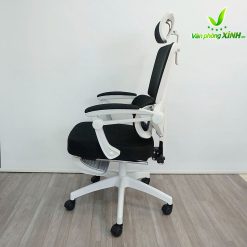 Tay ghế: Được làm từ chất liệu nhựa PP cứng, thiết kế bo góc với đường cong mềm mại nâng đỡ khuỷu tay người dùng, giúp hạn chế cảm giác mỏi tay và vai trong khi làm việc. Đặc biệt, tuy có thiết kế liền lưng ghế nhưng tay ghế cũng có thể co giãn chiều dài khi ngả lưng sâu.