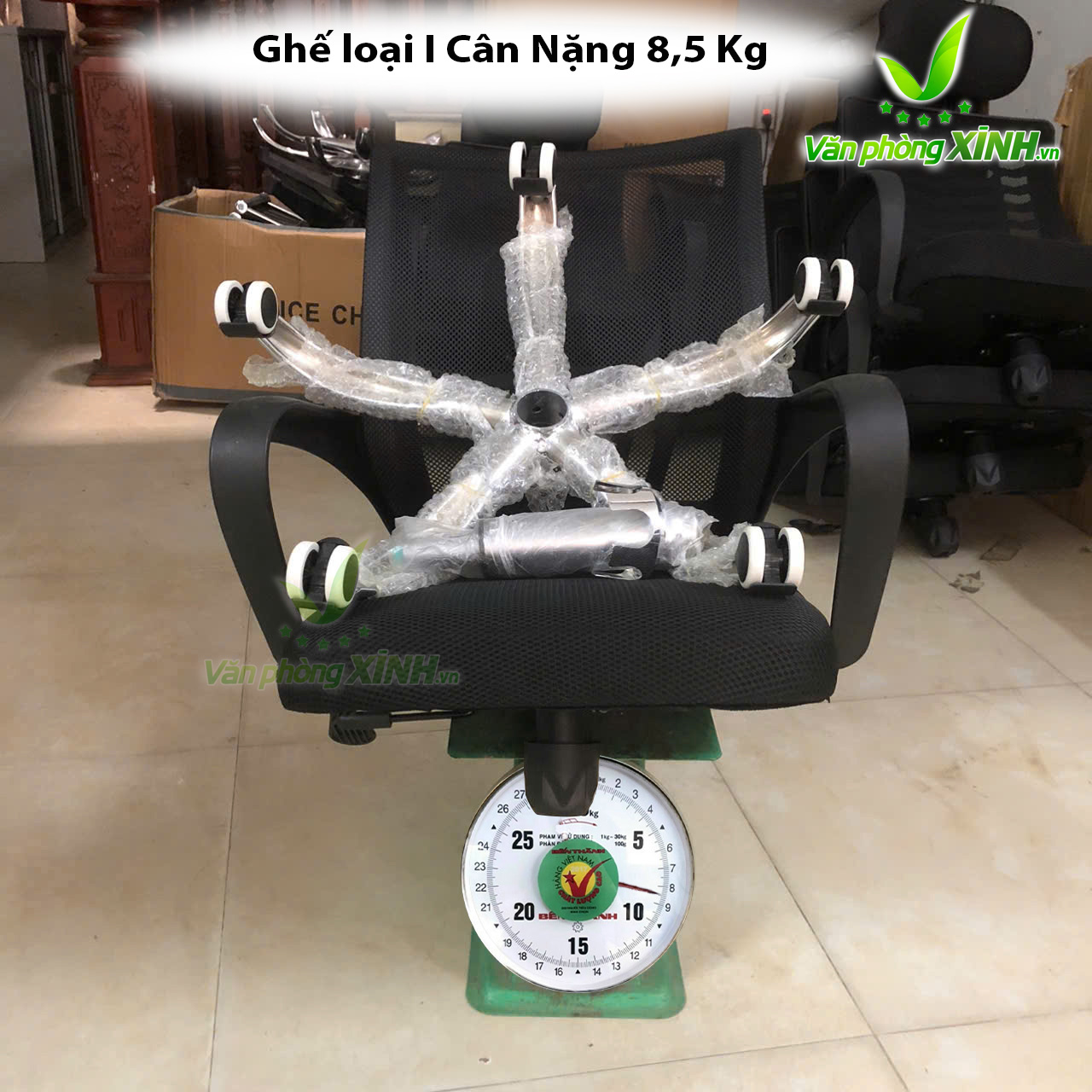 - Chất liệu: tựa lưới, mặt ngồi cốt gỗ, đệm mút, bọc nỉ lưới xốp; tay chân ghế bàng nhựa đen