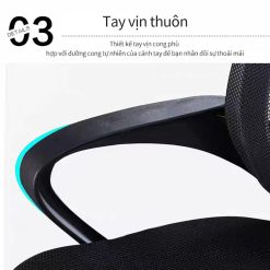 - Tay ghế: Tay ghế làm từ chất liệu nhựa đen, tựa tay thoải mái, giúp bảo vệ khuỷu tay người dùng, giúp chống mỏi và dễ dàng vệ sinh.