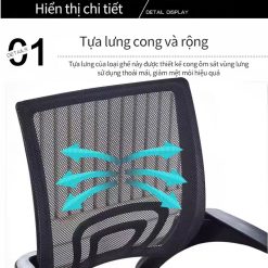 - Lưng ghế: Khung được thiết kế trang trí đỡ phần lưng nhựa màu đen, bọc vải lưới đem lại cảm giác thoải mái cho người dùng.