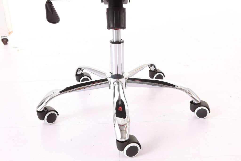 - Chân ghế: Chân hình sao mạ Crom, có 5 bánh xe làm từ nhựa vững chắc và dễ dàng xoay chuyển linh hoạt khi sử dụng. Có cần hơi điều chỉnh độ cao theo nhu cầu sử dụng của người dùng.