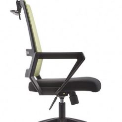 - Chất liệu: tựa lưới, mặt ngồi cốt gỗ, đệm mút, bọc nỉ lưới xốp; tay chân ghế bàng nhựa đen