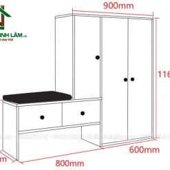 – Khung ván tủ dày 15mm dầy dặn, chắc chắn, phủ melamine 2 mặt tạo lên tủ có độ cứng chắc chống ẩm mốc