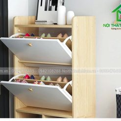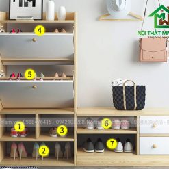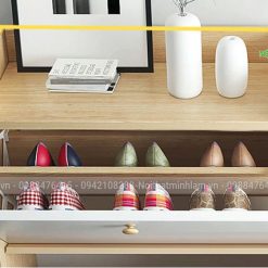 – Cánh mở hai bên, Tủ được chia làm 5 khoang để giầy. Sức chứa gấp đôi tủ giầy thông thường cùng kích thước.
