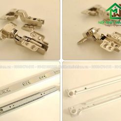 - Phụ kiện: Bản lề giảm chấn, Ray bi bản lề chính hãng