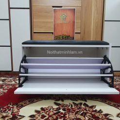 – Cánh mở lật thông minh, mỗi cánh chia làm 3 khoang để giày. Sức chứa gấp đôi tủ giầy thông thường cùng kích thước.