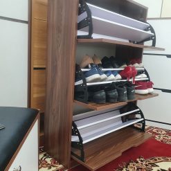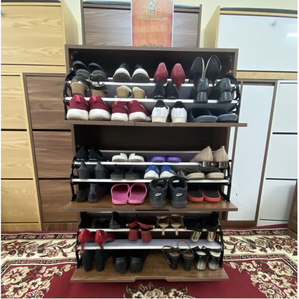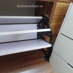 – Cánh mở lật thông minh, mỗi cánh chia làm 3 khoang để giày. Sức chứa gấp đôi tủ giầy thông thường cùng kích thước.