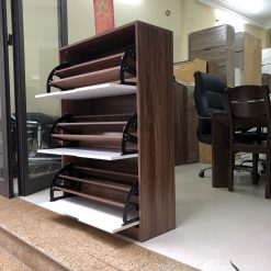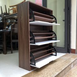 – Cánh mở lật thông minh, mỗi cánh chia làm 3 khoang để giày. Sức chứa gấp đôi tủ giầy thông thường cùng kích thước.