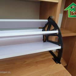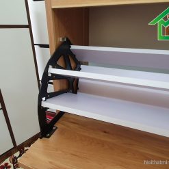 – Cánh mở lật thông minh, mỗi cánh chia làm 2 khoang để giày. Sức chứa gấp đôi tủ giầy thông thường cùng kích thước.